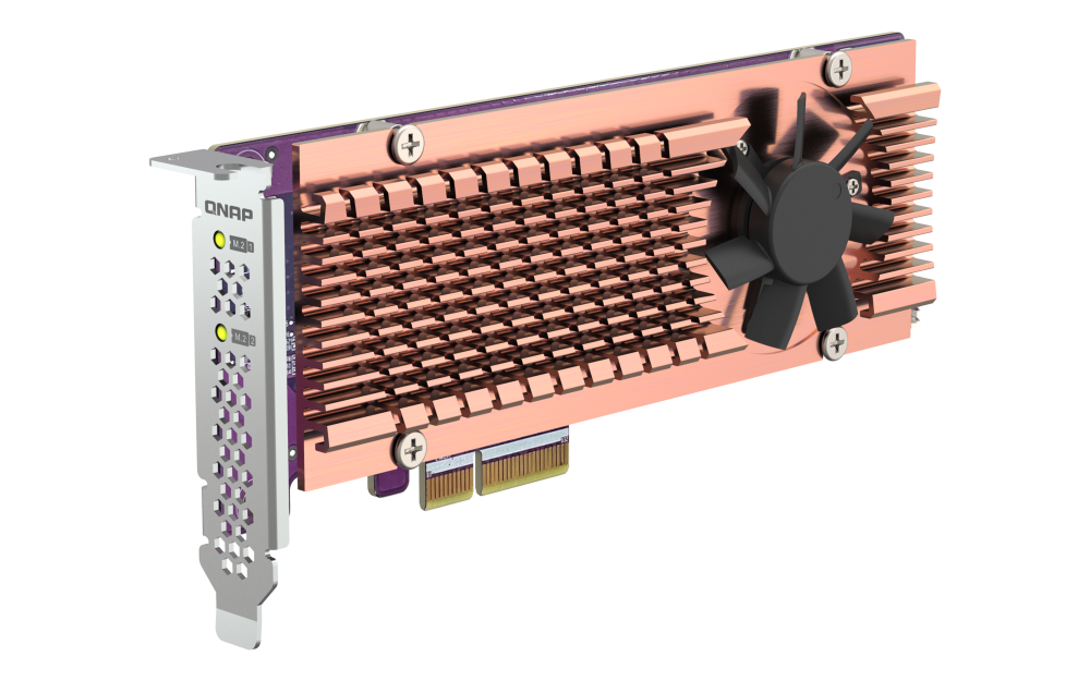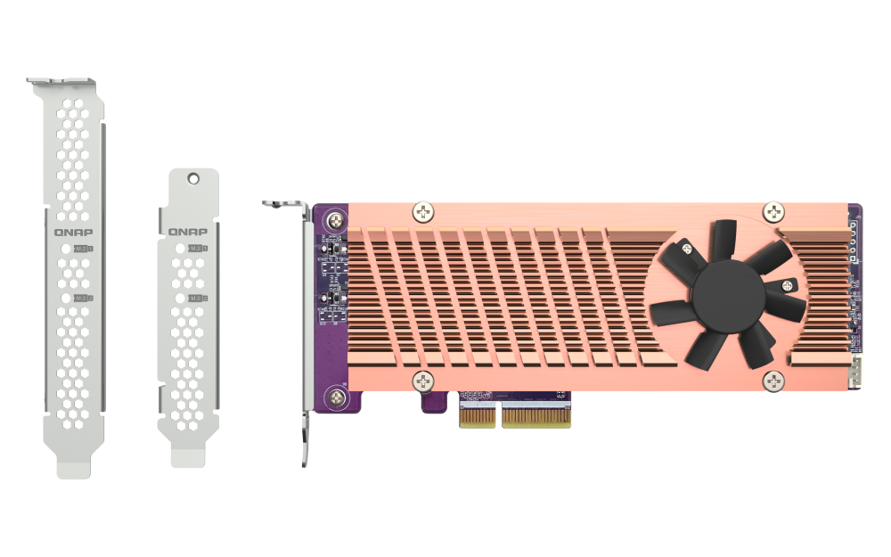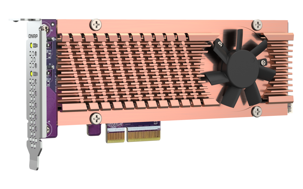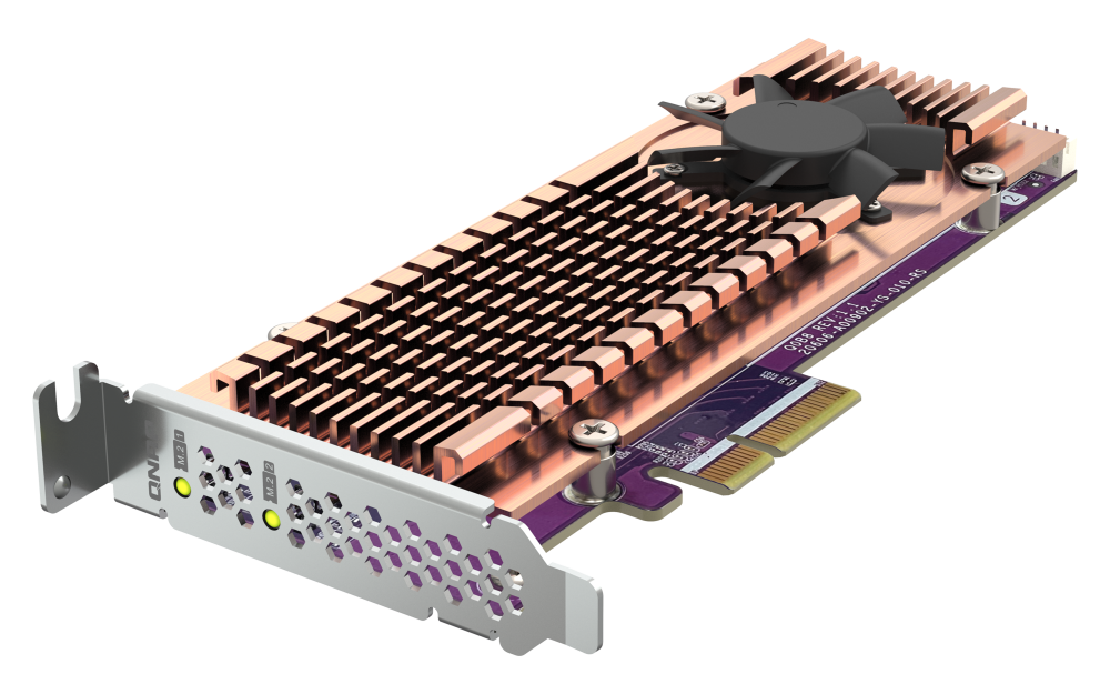 QNAP Dual M.2 22110 / 2280 PCIe Gen3 x4 NVMe SSD Expansion Card QM2-2P-344A Add two M.2 NVMe SSDs to your NAS with a PCIe 3.0 expansion card Add NVMe SSDs to your QNAP NAS with the QM2-2P-344A to increase...View more