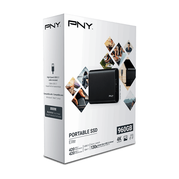 besbestPNYPNY Elite USB 3.1 Gen 1 960GB Portable SSD - PSD1CS1050-960-FFS High Speed File Transfer Read speeds up to 430 MB/s* and write speeds up to 400 MB/s* Ultra-Compact Form Factor Durable, ultra-compact aluminum housing USB 3.1 USB 3.1 Gen...View more