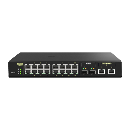 QNAP QSW-M2116P-2T2S 18-Port Multi-Gig PoE++ Compliant Managed Switch with SFP+ QSW-M2116P-2T2S 90-watt 10GbE PoE++ and 30-watt 2.5GbE PoE+ Managed Switch for the Wi-Fi 6 Generation The QNAP QSW-M2116P-2T2S is a L2 PoE Managed Switch with sixteen 30-watt 2.5GbE PoE+ ports,...View more