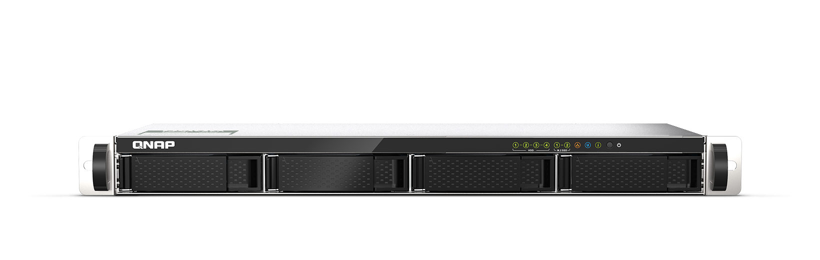 QNAP TS-435XeU 4-Bay NAS Enclosure - TS-435XeU-4G TS-435XeU Short depth rackmount 4-bay NAS, supporting 2.5GbE/10GbE connectivity and M.2 NVMe SSD caching. The compact and feature-rich TS-435XeU provides a professional-grade quad-core NAS solution in short depth rackmount form factor. The native...View more