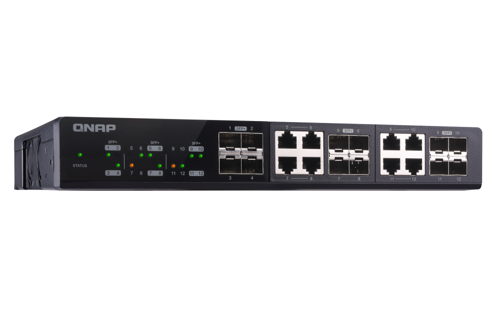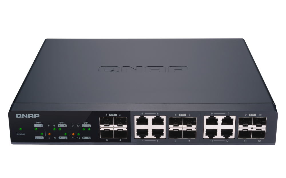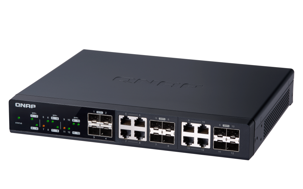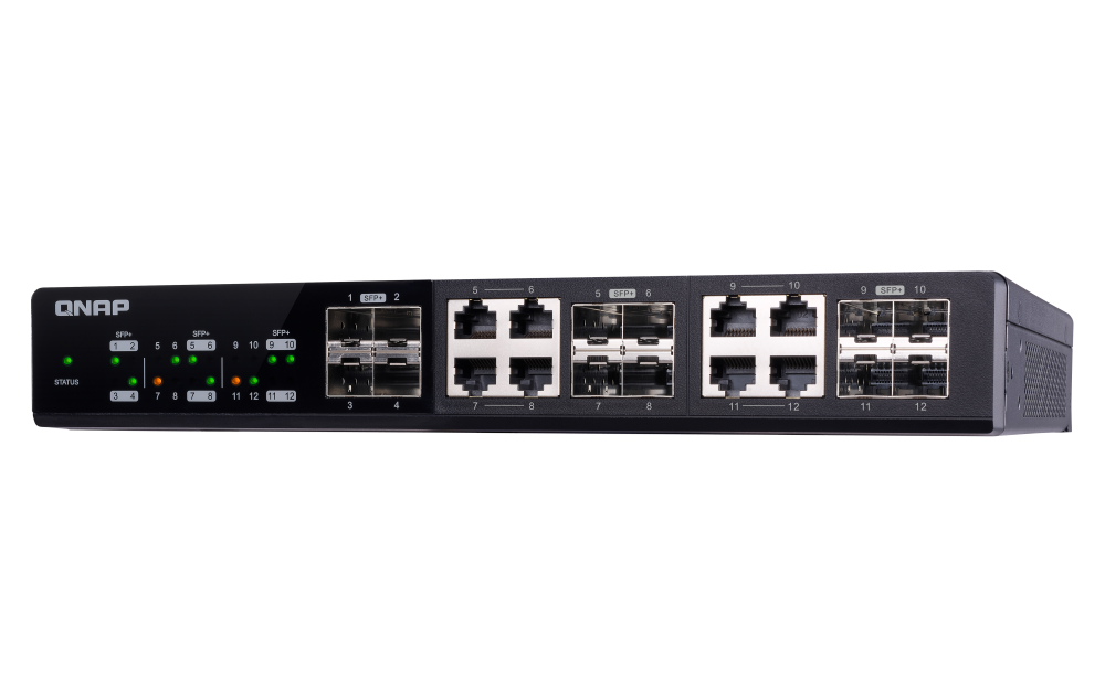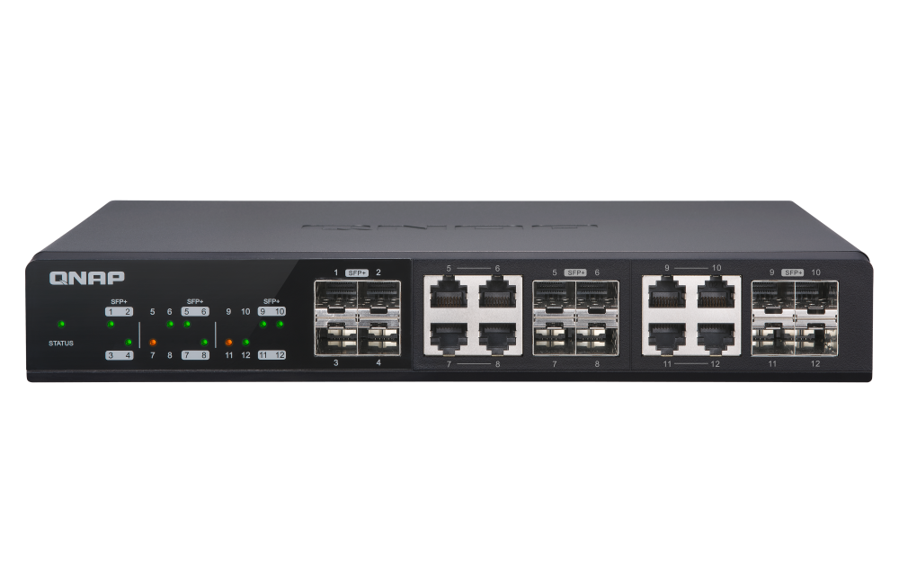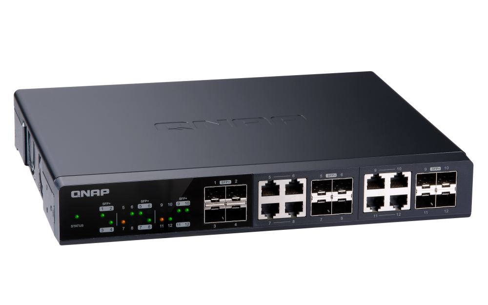 QNAP QSW-M1208-8C 10GbE Managed Switch 4-Port 10GbE SFP+ Gigabit Upgrade your network with a 10GbE managed switch The QSW-M1208-8C is a Layer 2 Web Managed Switch with four 10GbE SFP+ ports and eight 10GbE SFP+/RJ45 combo ports that enables blazing-fast...View more