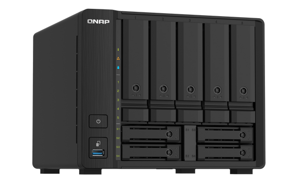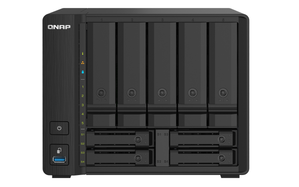 QNAP TS-932PX-4G 9-Bay NAS, AL324 64-bit quad-core 1.7GHz, 4GB DDR4 TS-932PX Compact 9-bay NAS with 10GbE SFP+ and 2.5GbE for Smoother File Applications The quad-core 1.7GHz TS-932PX fits nine drive bays into the size of a 5-bay NAS. With five...View more
