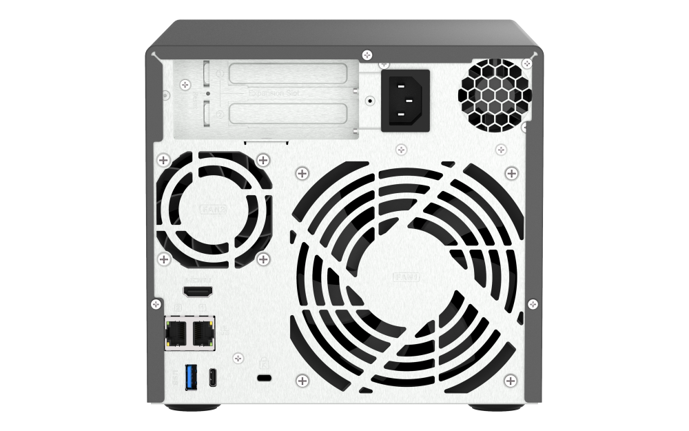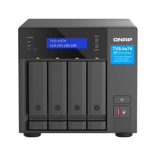 QNAP TVS-h474 4-Bay NAS Enclosure Highly-reliable ZFS-based storage with PCIe Gen 4 expandability for 10/25GbE connectivity, M.2 NVMe SSD caching and multi-threads processors for virtualization applications With an Intel® Pentium® Gold dual-core Processor to support the ZFS-based QuTS hero operating...View more