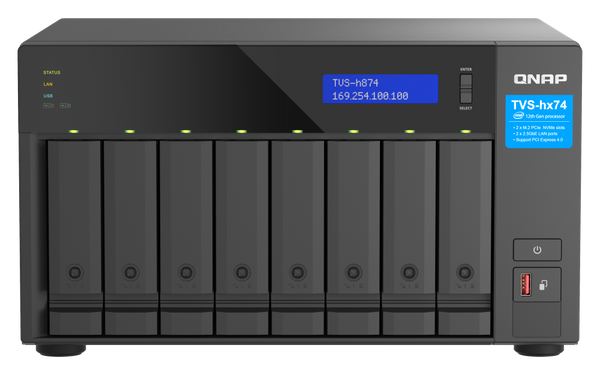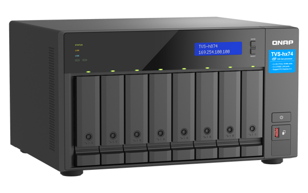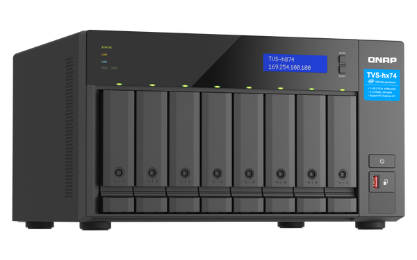 QNAP TVS-h874X 8-Bay NAS Enclosure - TVS-h874X-i9-64G 12th Intel® Core™ processor with built-in GPU 2x M.2 NVMe slots for SSD caching 2x 2.5GbE, 2x 10GbE, 2x PCIe slots TVS-h874X-i9-64G  Intel® Core™ i9 16-core (8P+8E) /24-thread Processor, 64 GB SODIMM DDR4...View more