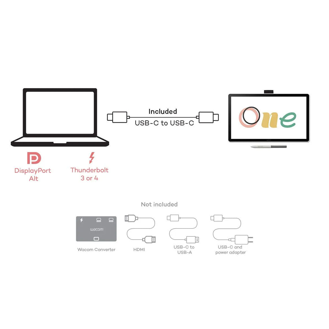 USB-C port with DisplayPort™ Alt Mode*, internet access to download driver. To achieve the maximum resolution and refresh rate on Wacom One 14, the host PC ports need to support 1920 x 1080@60Hz. *Thunderbolt 3 or later is also supported.
