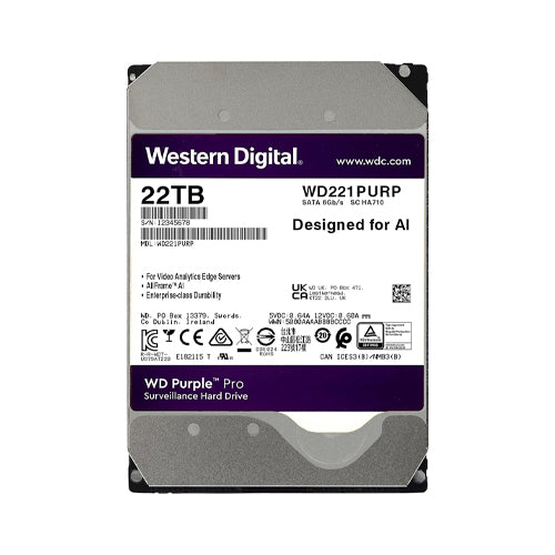 WD Purple Pro Smart Video Hard Drive - 22TB - WD221PURP Advanced Storage for Smart Video Solutions WD Purple Pro drives are designed for advanced AI-enabled recorders, video analytics servers and deep learning solutions requiring additional capacity, performance and workload...View more