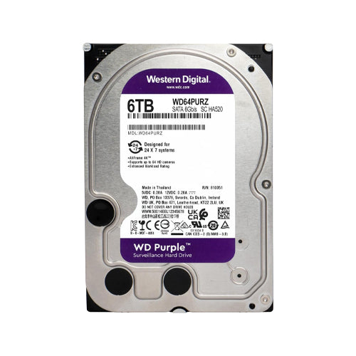 WD Purple Surveillance Hard Drive - 6TB - WD64PURZ Uncompromising Surveillance Storage WD Purple drives are designed to meet the challenges of 24x7 video surveillance recording. These drives are engineered specifically for surveillance to help withstand the elevated heat fluctuations and...View more