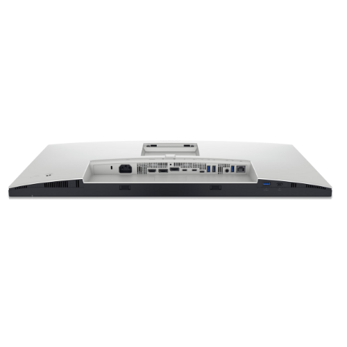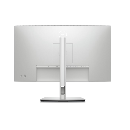 The stand provides full ergonomics (height, tilt, swivel, pivot) and VESA compatibility for flexible mounting; factory calibration and Dell Display Manager support (Easy Arrange and remote asset management) make the U2724DE easy to deploy and manage in IT fleets. Security features include cable lock and anti‑theft stand options for shared environments.