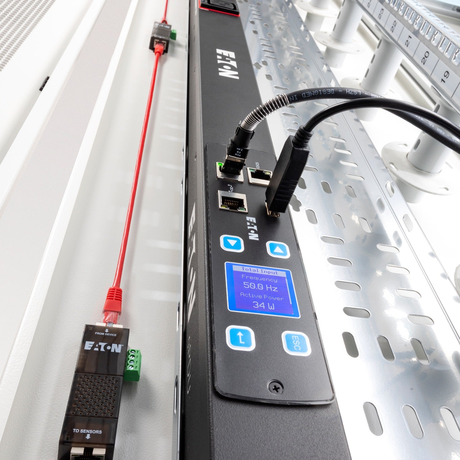 The optional Eaton Environmental Monitoring Probe (EMP) Gen 2 is a connectivity device that enables you to collect temperature and humidity readings in rack enclosures and monitor environmental data remotely using Eaton's power monitoring solutions or a standard web browser. Each EMP provides one temperature, one humidity, and two dry-contact status data points. Compatible with UPSs and PDUs, the EMP Gen 2 features a translucent case and integrated LED to positively identify the status of each sensor at a glance while walking the aisles.