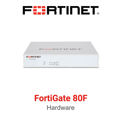 Fortinet FortiGate Firewall FG-80F with 14 x GE RJ45 ports (including 1 x DMZ port, 1 x Mgmt port, 1 x HA port, 12 x switch ports), 2 x Shared Media pairs (Including 2 x GE RJ45 ports, 2 x SFP slots).