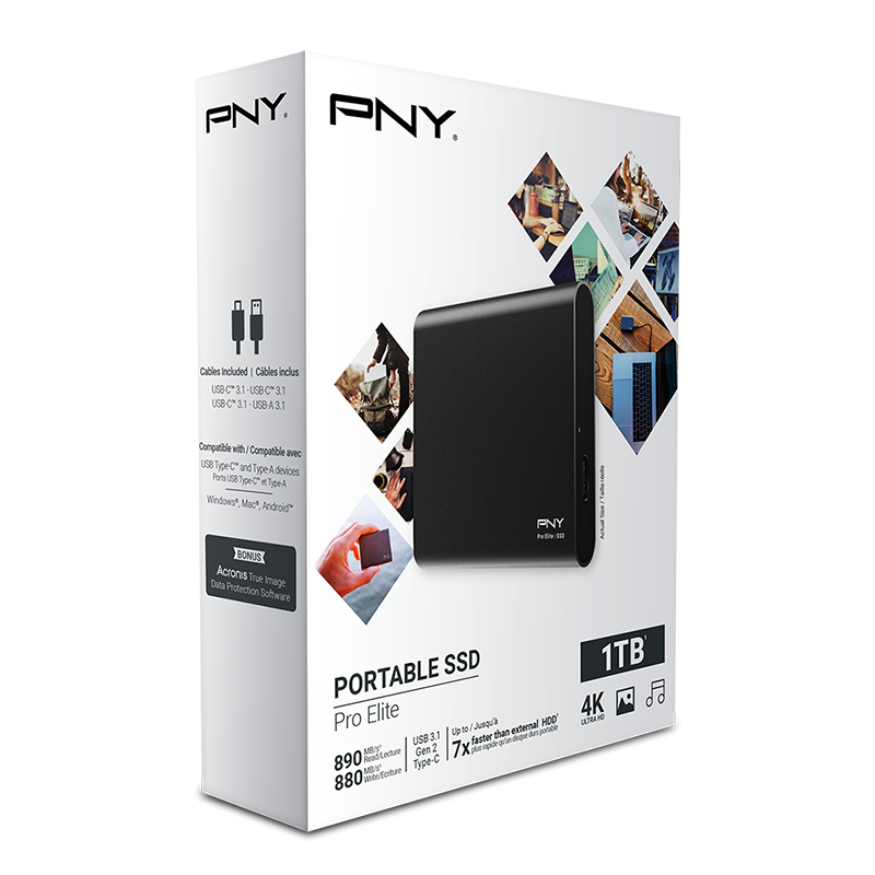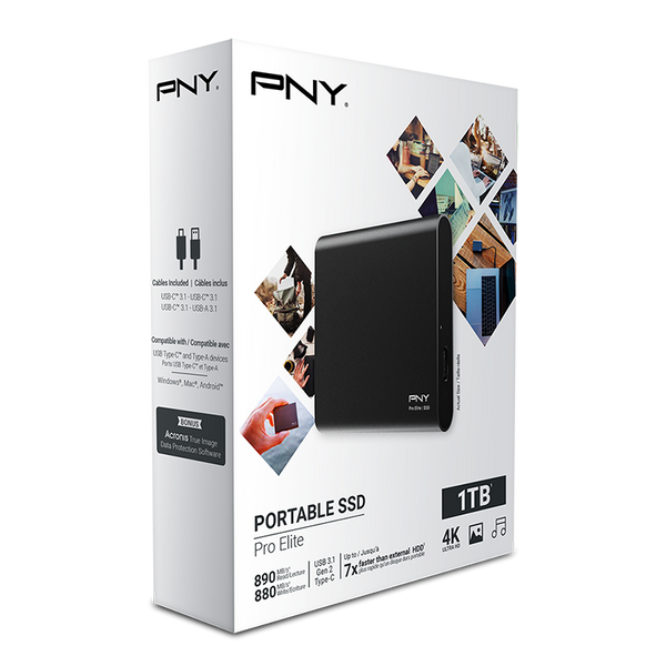 PNY Pro Elite USB 3.1 Gen 2 Type-C 1TB Portable SSD - PSD0CS2060-1TB-RB Extreme Performance With read and write speeds of up to 890 MB/s and 900 MB/s respectively, this portable SSD provides transfer speeds of up to 30 times...View more