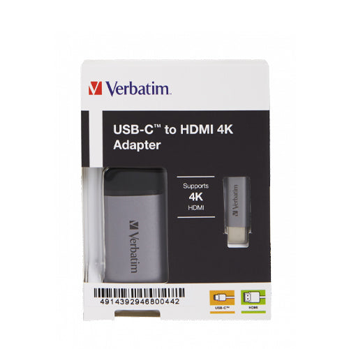 Verbatim USB-C  to HDMI 4K Adapter - 49143 Overview Seamless connection The Verbatim USB-C® to HDMI 4K adapter lets you connect your USB-C or Thunderbolt 3 (USB-C) enabled smartphones, laptops and MacBooks to a projector, HDTV or monitor that supports HDMI....View more